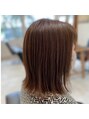 優しい色味のマロンベージュハイトーンからのトーンダウンでしたので、綺麗にくすんで発色しました!カットはギリギリ結べるボブstyle