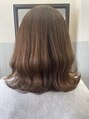 アッシュ系カラーとブルー系カラーシャンプーで髪のオレンジアンダーを抑え切りっぱなしミディアムをくびれ外はね、サイドバングはリバース巻きで仕上げました。
