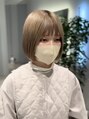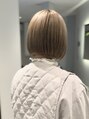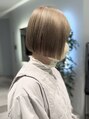 ぱつっとしたミニボブはおしゃれとかわいさを兼ね備えたスタイルです。カラーは1~2ブリーチで作るミルクティーベージュです。ブリーチ回数は髪質によって異なるため、直接カウンセリングでご相談下さい(^^)