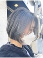 ハイライト&グラデーションカラーで立体感のあるボブに。ブリーチをしていてもオイルケアにでツヤのある髪を。グレー強めのカラーでクールな印象に。