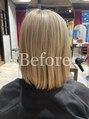 #ミルクティーベージュ/ブリーチ/ボブ/切りっぱなし/髪質改善