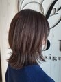 くびれミディアムでキュッと引き締めれば首筋がほっそり綺麗に見えます。ふんわり感とタイトな襟足でメリハリのあるすっきりスタイルです。カラーはくすみこんと艶感が丁度いいアッシュベージュにしました。柔らかい質感をプラスしてくれる素敵な髪色です。
