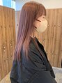 " creamy pink beige " 2~3 bleach. 淡いピンクベージュが可愛い◎ 色落ちはミルクティーベージュに。 ピンクシャンプーを使うと長くピンクカラーを楽しめます♪ カットはぷつっとカットでお洒落な雰囲気に。