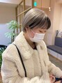 丸みのあるショートボブにハイトーンのインナーカラー◎女性らしい丸みがしっかり出るようにカットしてあるので乾かすだけで丸くなります!カラーは明るめのミルクティーシルバーにインナーカラーでブラック!