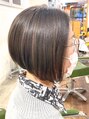 太めのハイライトを数本入れ、前下がりのボブにアクセントを○