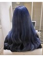 韓国風アレンジでつやつやに♪大きなカールで大人っぽく見えます^^!ブルー系カラーでモードな印象になります♪ブリーチ2回で鮮やかなブルー、透明感アッシュカラーはブリーチ1回でできます♪