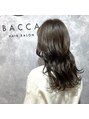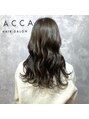 カット/ゆるやかな前上がりロング。カラー/赤みの無いマットベージュ