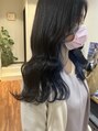 人気のインナーカラー!!ブリーチ1回に濃いめなネイビーブルーをONカラー。ベースは暗めなグレージュで、全体的に暗く見えるけどさりげない可愛さのカラーです◎