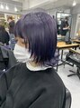 ブリーチのリタッチからオンカラーで暗めのディープパープルに。お顔周りにレイヤーを入れてミニウルフっぽく仕上げました。