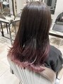 グラデーションカラー。寒色系のアッシュグレージュにカシスピンクのグラデーションにしました。あえて反対色でグラデーションをしていてビターな雰囲気に仕上げています。全体的に重めのカットで毛先を揃えています!