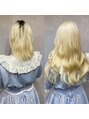 リタッチカラー後にシールエクステで自然なハイトーンロングヘアに★※カラーは対応店舗のみ可能