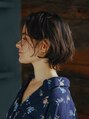 アッシュ系の暗めのブラウンは大人っぽい落ち着いた雰囲気が出るのでとてもおすすめなカラーです。ボリュームゾーンが低めのショートボブは、普通のボブよりも襟足はすっきり見えますがボーイッシュなショートに見えない上品なスタイルです。