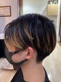 センターパートに刈り上げを入れて絶壁を解消しつつ、毛先にだけ明るいカラーを入れることで、立体感のある束感にしました。ナチュラルな質感でも個性的な雰囲気が出せます。セットが苦手、めんどくさい方でも簡単かつカラーで小慣れな束感が出せます!