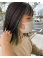 切りっぱなしミディアムヘアとフェイスフレーミング☆インナーカラーはミントで爽やかな雰囲気に☆アンニュイ/切りっぱなし/外ハネ