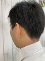 サイド・バックは、ハサミで刈り上げます。トップは、ラウンドスクエアでカットして、全体的に毛量調理してます。クセ毛を馴染ませてスッキリとしたスタイルです。