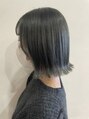 赤みゼロのオリーブグレージュです♪ブリーチしているベースに色を入れているので透明感抜群!切りっぱなしのボブとも相性ばっちりです!