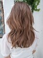 ダブルカラーで、透明感のあるクリアベージュカラーのスタイルです!ふんわり巻き髪スタイルも重く見えなく、ふんわり見せてくれます。カットもレイヤーが入り軽さと、動きがでてかわいいです!前髪も軽めにカットします
