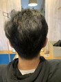 アシンメトリーでツーブロックを入れてあります。左側が高めに刈り上がってます。人によってサイドが膨らむ方もいらっしゃるので、刈り上げ高さで調整できます。