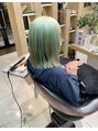 お客様をケアブリーチで、できるだけダメージ無いようにブリーチして間グリーンカラーにしました♪淡い色味のカラーは、基本的にブリーチ2回必須となっています!カウンセリングでしっかり髪の毛の状態見て、ダメージを最小限に抑えて可愛いカラーにします♪