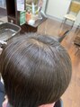 リタッチ(根元の白髪染め)をしてセルフブローでこの艶感♪高品質のカラー剤を使用し、高濃度炭酸泉ケアとノンシリコン毛髪補修成分配合シャンプー&トリートメント、ドライヤーはリファを使用しただけす。仕上がりもサラサラ♪みなさんもご体感ください。