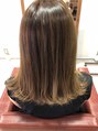 毛先は外ハネにスタイリングで動きを付けたストレートスタイルです。