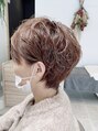 トップのボリュームが欲しい方におすすめです。トップとミドルセクション(中間)にゆるめのパーマをかけ、襟足と顔周りはパーマをかけずメリハリのあるスタイルに
