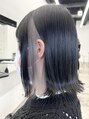 1_カットはワンレンボブベース 2_頭のフォルムを重視し 3_軽めな毛先は外ハネアンニュイカールさせ 4_カラーはブルーブラック&インナーはホワイトグレージュに //メニューはカット+インナーカラー+トリートメント#1