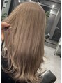 1年ぶりのフルブリーチで可愛く綺麗なミルクティに!中間部分に黒染めの残留がありましたが部分的に2ブリーチを行い除去をしてハイトーンに!ダメージも最小限に抑えるように4種類のブリーチ剤、ケア剤を使い分けています!