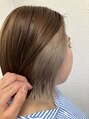 グレージュ系のインナーカラーです。ブリーチは2回してあります。ベースと同じ色でカラーしているのでインナー部分と同系色になって馴染みの良い仕上がりにしました。