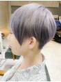 前髪薄めのハンサムショートで女性らしさとこなれ感を。メリハリのあるフォルムにする事で小顔に。頭の形を綺麗に見せれます。カラーは柔らかさをだすためブリーチデザインカラー で透明感カラーに!!
