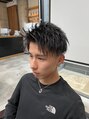 ツイストパーマ短髪ジェットモヒカン束感黒髪