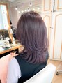 ラベンダーグレージュカラー。艶とラベンダーの透明感あるお色で柔らかい雰囲気に。ワンブリーチしています。
