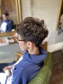 緩めのパーマとカーキベージュカラーでハンサム可愛いショートに!
