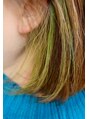 ライムグリーンインナーカラー。ベージュ系カラーベースにポイントインナーカラーしました!