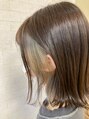 肩上の外ハネスタイル。髪をおろしてても縛っても可能なので人気です!グレーアッシュの色味を入れて赤味も抑えています。インナーカラーを入れたので、チラッと見えるのもおすすめです。