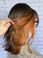 インナーはブリーチ1回での鮮やかなオレンジでベースは、少し明るめのナチュラルブラウン!全体的に明るい印象で、オススメです!