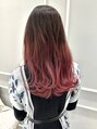 毛先までのピンクグラデーションです。根本は6レベのグレージュ