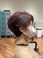 耳にかけれるショートで後ろに簡単に丸みが出るようにカットしています。綺麗な毛流れが髪を綺麗に見せてくれる大人っぽく見えるピンクブラウンのカラーリングとの相性もバッチリです。