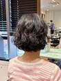 耳にかけても収まるコンパクトなミニボブに動きをつけたパーマスタイルです。髪に優しい薬剤で最低限のダメージでパーマをかけてます。朝のセットも楽なお洒落パーマスタイルです。