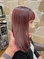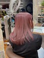 ブリーチなしで作る艶感のあるピンクブラウンカラーです。ブリーチをせずになるべく明るさを作ったベースに入れることでピンクの発色も綺麗に透明感も出ます。