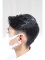 トップ長めの、手ぐしでサイドを流すツーブロックショートです。