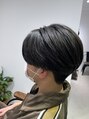 センターパートのグラデーションスタイルになります。カットはサイドツーブロにし、バックは刈り上げでバックポイントにウエイトを持ってきてシルエットの調整をします。トップに向けてながさを残しながらカットします。