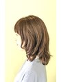 伸ばしかけの ミディアムスタイルに 毛先にユルフワなパーマを! しっかりとした毛量調整と カットラインの修正でくびれ感のある菱形ミディアムスタイルを!マットブラウンでオレンジ味を抑え 柔らかい印象に!