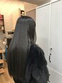 ダークアッシュブラックにTOKIOリミテッド5ステップトリートメントに毛先2センチカットに枝毛カットにTOKIKATAハサミのビガミで艶サラです♪