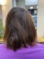 襟足に癖があるので縮毛矯正をかけてボリュームを抑えまとまりのあるスタイルに仕上げました。カラーはツヤのあるナチュラルブラウンを入れて仕上げました。
