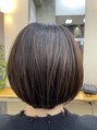 頭の丸みに合わせてスッキリ収まるようにカットしました。またサイドの内側を刈り上げる事で前から見た時にスッキリとした印象になり、耳にかけてあげたりする事で少し違った印象にできるようにしました。