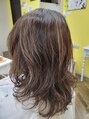 暗めのカラーにハイライトをいれ、パーマのカールをいかしたスタイルです。かなりの直毛ですが柔らかくみえますよね!