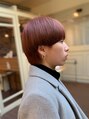 元々鮮やかなオレンジ色をなさっていたお客様です。少しイメージを変えたいとのことで、今までのオレンジの残色も生かしつつ新たにブラウンを調合し少し落ち着いた色合いにチェンジさせて頂きました。とても綺麗れいな発色に大満足されていました
