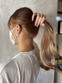 ポニーテールに結んでも可愛いインナーカラーベージュ