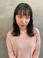 地毛風のグレージュカラーとナチュラルなオン眉の前髪で抜け感を出しました。毛先はゆるっと巻いて無造作ヘア【自由が丘LACO】